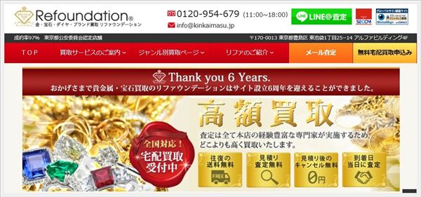 リファスタは、貴金属や宝石を中心に取り扱っている買取業者です。東京池袋に本店を構えており、熟練の鑑定士数人で運営している小規模店です。店舗が少ない分、ネット宅配買取に非常に力を入れており、全国どこからでも無料で利用することができます。在籍中の鑑定士の方々の顔がホームページで見られるので安心感があります。